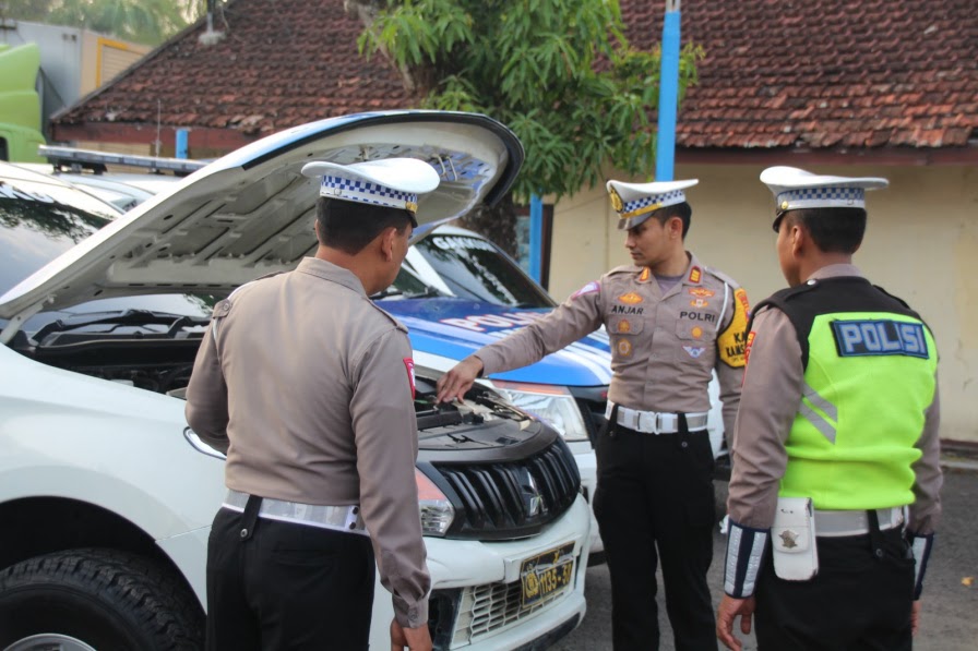 Pengecekan tersebut dilakukan terhadap jas hujan, lampu pengatur lalulintas, sepatu boot, tongkat polisi, pluit, Borgol, Handy Talky (HT) dan kendaraan dinas.