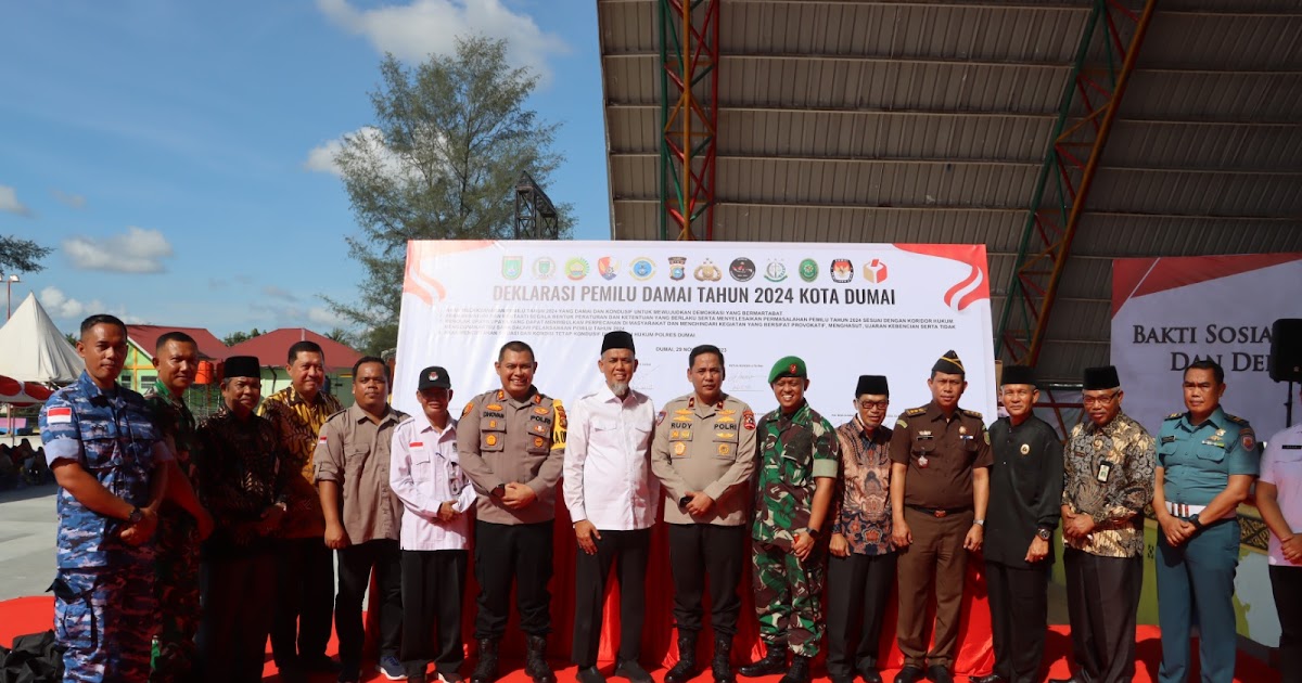 Kegiatan berlangsung di Lapangan Bukit Gelanggang ini dihadiri oleh seluruh Forkopimda Kota Dumai, tokoh masyarakat, tokoh pemuda, tokoh adat, perwakilan partai politik serta ribuan warga baik masyarakat kurang mampu, anak pesantren dan panti asuhan. Seluruh masyarakat dengan lantang menyatakan deklarasi damai yang dibacakan oleh Ketua KPU Kota Dumai.